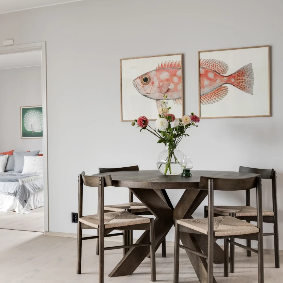 Alta Matbord är ett stort runt matbord i ekfaner som kombinerar stil och funktion. Den runda bordsskivan är delbar och gör bordet enkelt att förlänga med upp till 2 iläggsskivor vilket gör bordet perfekt för vardagliga tillfällen eller större sällskap. De korsade benen ger extra komfort med mer utrymme under bordet. Matbordet ger en unik, luftig och modern känsla och passar in i både kök och matrum. Alta finns i flera färger.