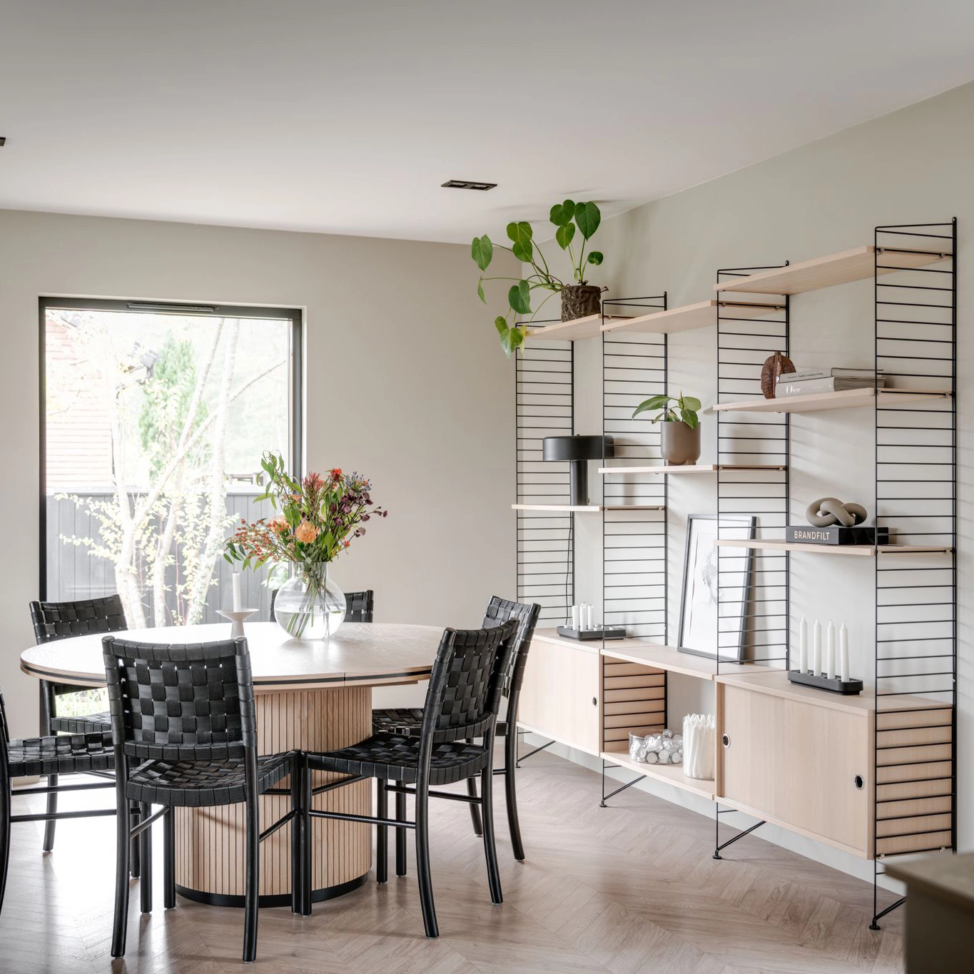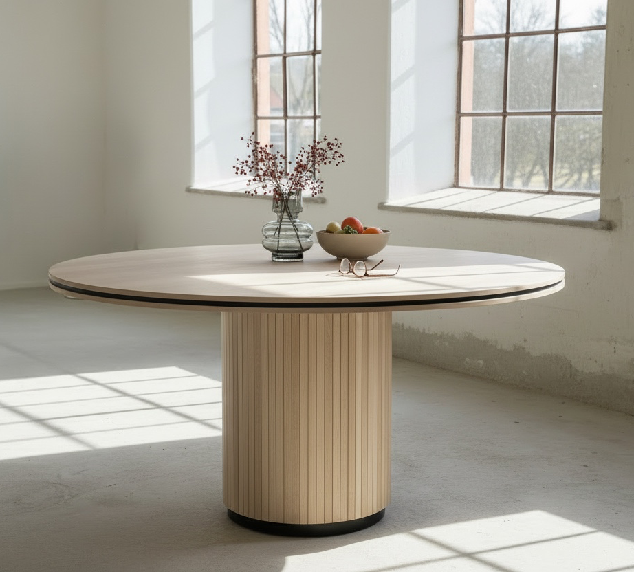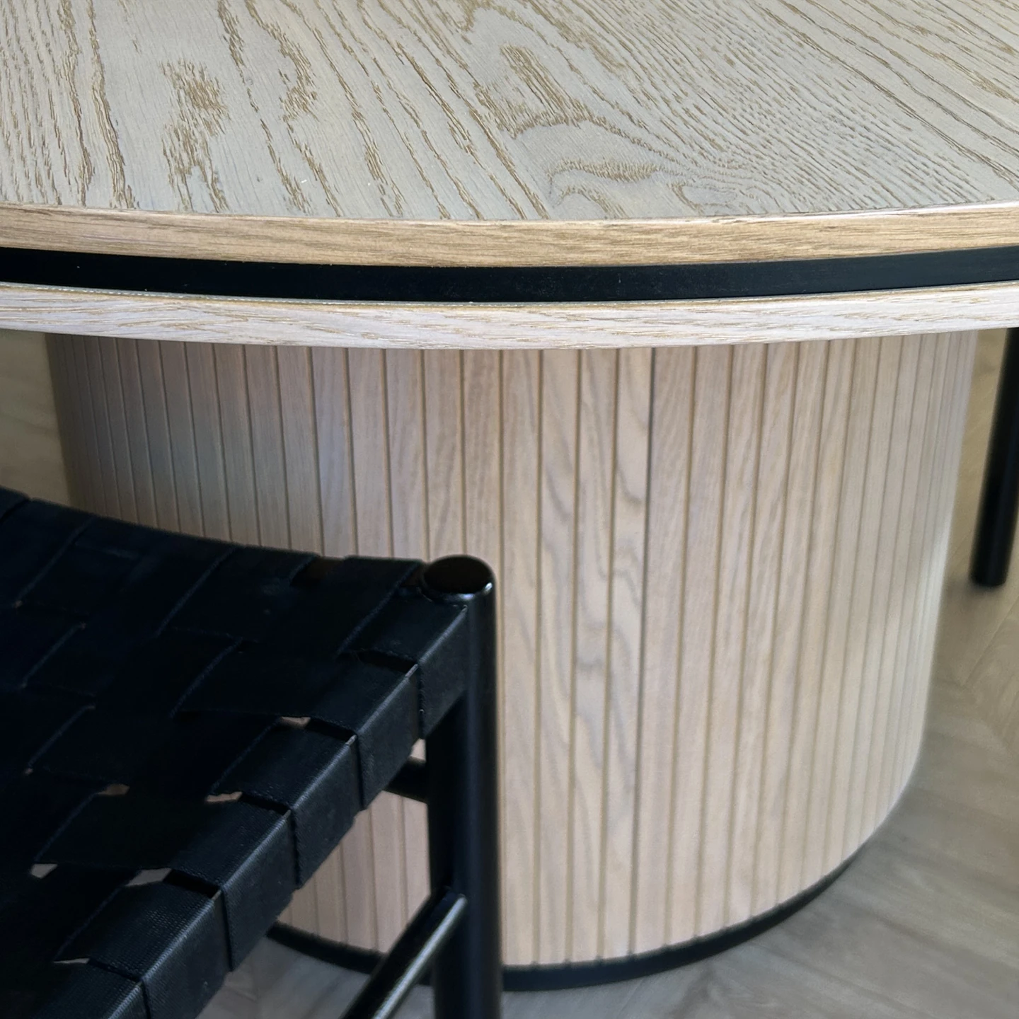 Runt matbord med svarta detaljer
