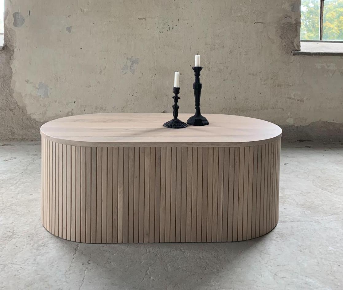 Upptäck Circle, soffbordet som förenar tidlös elegans med en modern twist. Tillverkat i massiv ek och designat med en karakteristisk pelare med ribbor, ger Circle ditt vardagsrum en exklusiv och sofistikerad känsla. Den stiliga kombinationen av den hållbara eken och de unika ribbdetaljerna skapar en möbel som både är praktisk och ett vackert designobjekt.