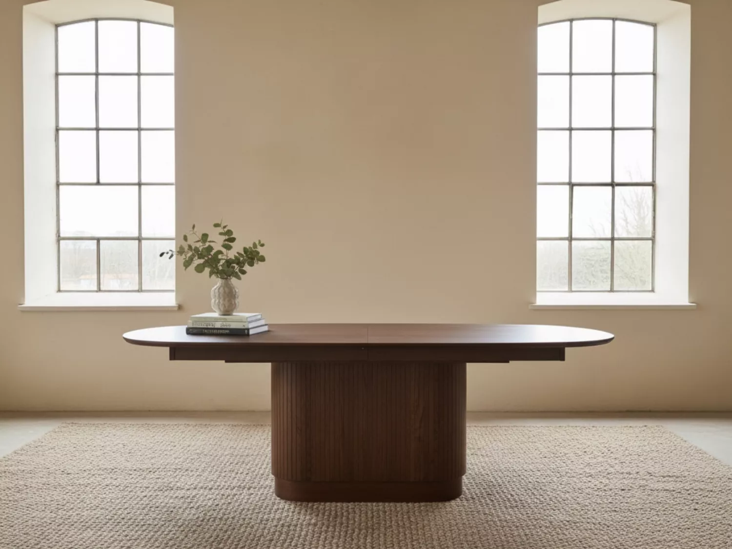Ett stilrent och tidlöst matbord med mjukt rundade former och stabil pelarfot som ger gott om benutrymme runt hela bordet. Bordsskivan mäter 220 × 110 cm och kompletteras med ett ilägg på 50 cm – perfekt när du får fler gäster. Den varma trätonen och det gedigna hantverket gör bordet till en naturlig samlingsplats i både moderna och klassiska hem.